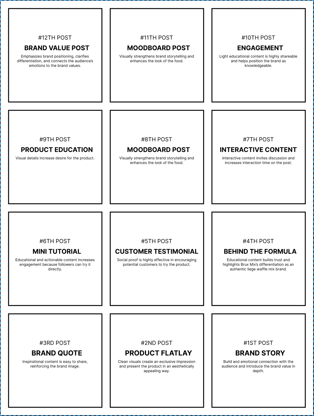 Creating a fresh, cohesive brand presence for Brux Mix, an authentic Belgian liège waffle mix. From social media planning and visual aesthetics, this work captures the warmth of traditional Belgian waffles while building a modern, engaging identity that connects with today's food lovers.